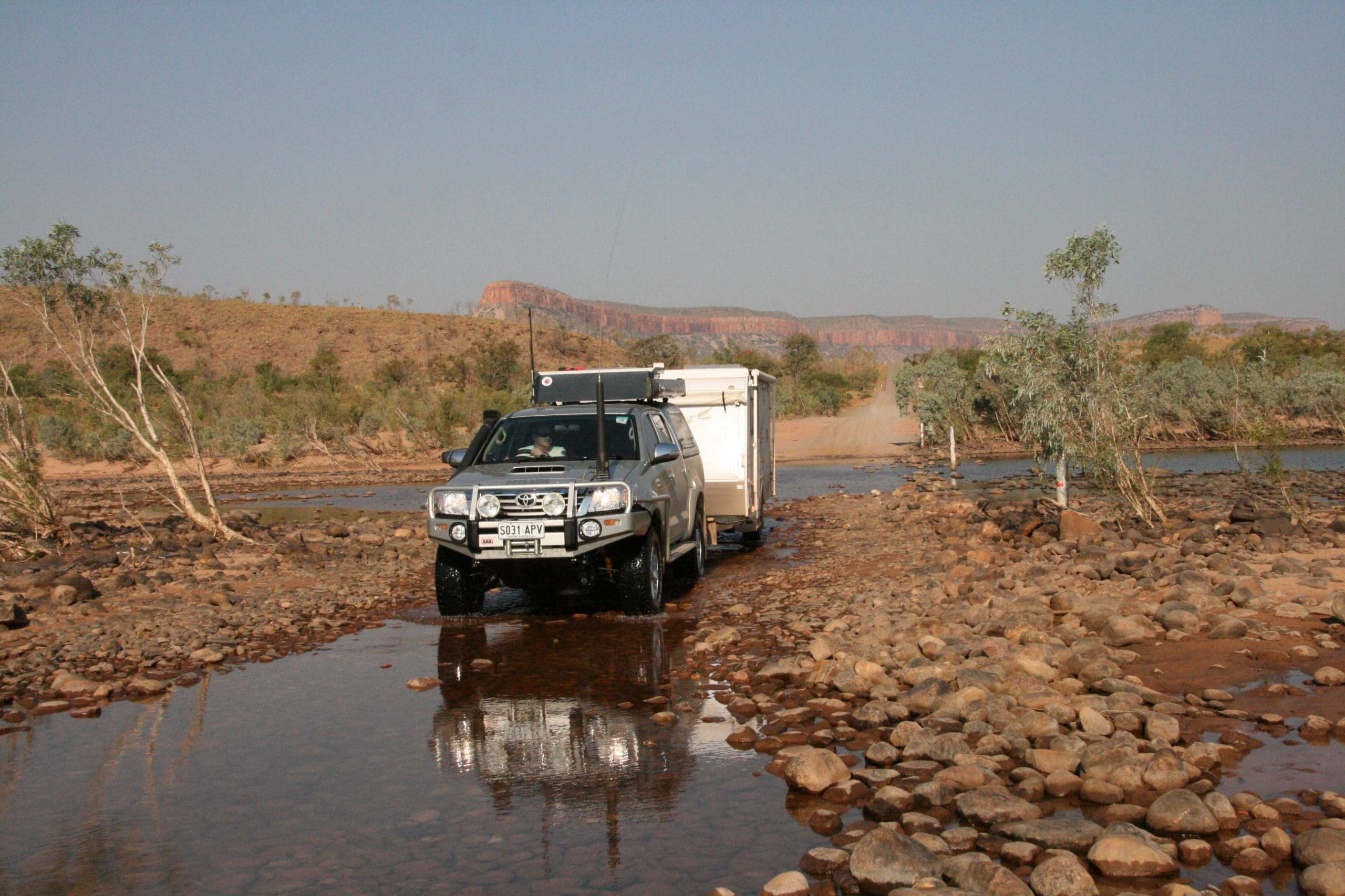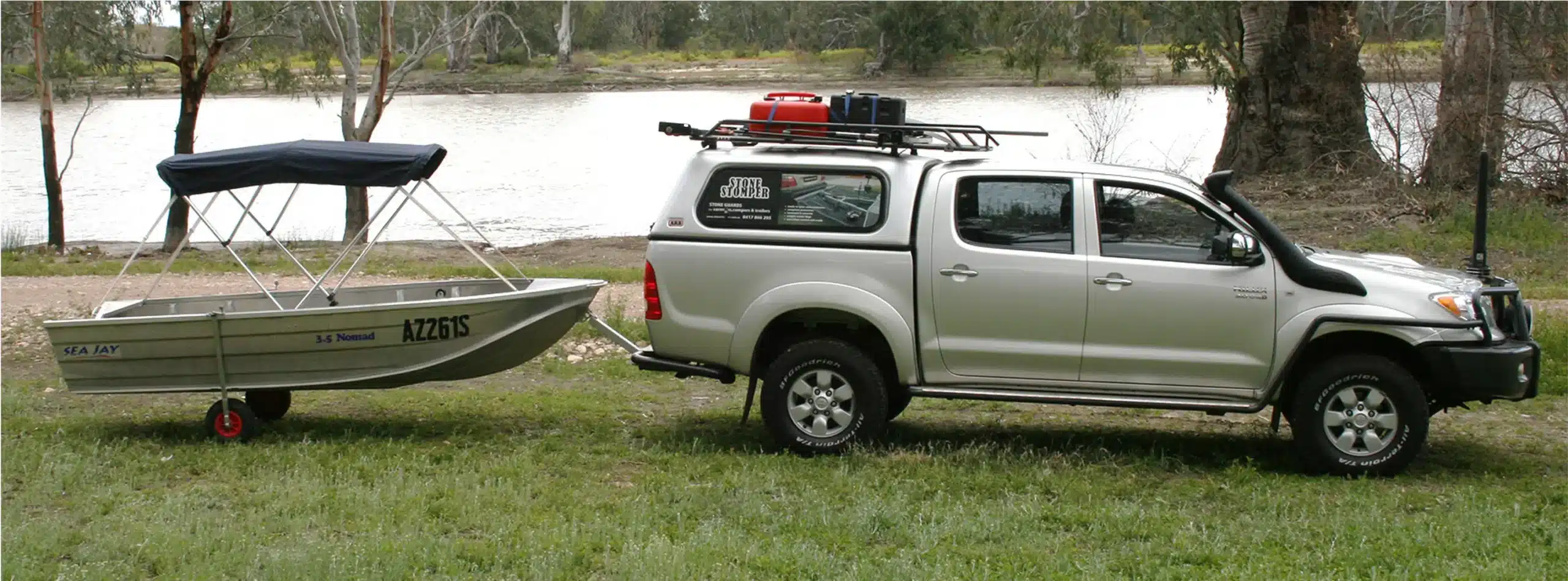It all started when we purchased a new Hilux and soft floor camper trailer 12 years ago. We were off on our first big outback adventure. In preparation I fitted a forward facing angled stone guard thinking this would offer the stone protection we needed. After 4,000km we returned with a broken rear window, peppered tailgate and sandblasted camper trailer that required a respray. For our next big trip down the Gibb River Road and Tanami in a Jayco Eagle, we needed to find a better stone protection solution … the Stone Stomper® was born. We have now travelled over 500,000 ‘stone chip free’ kilometres around OZ.